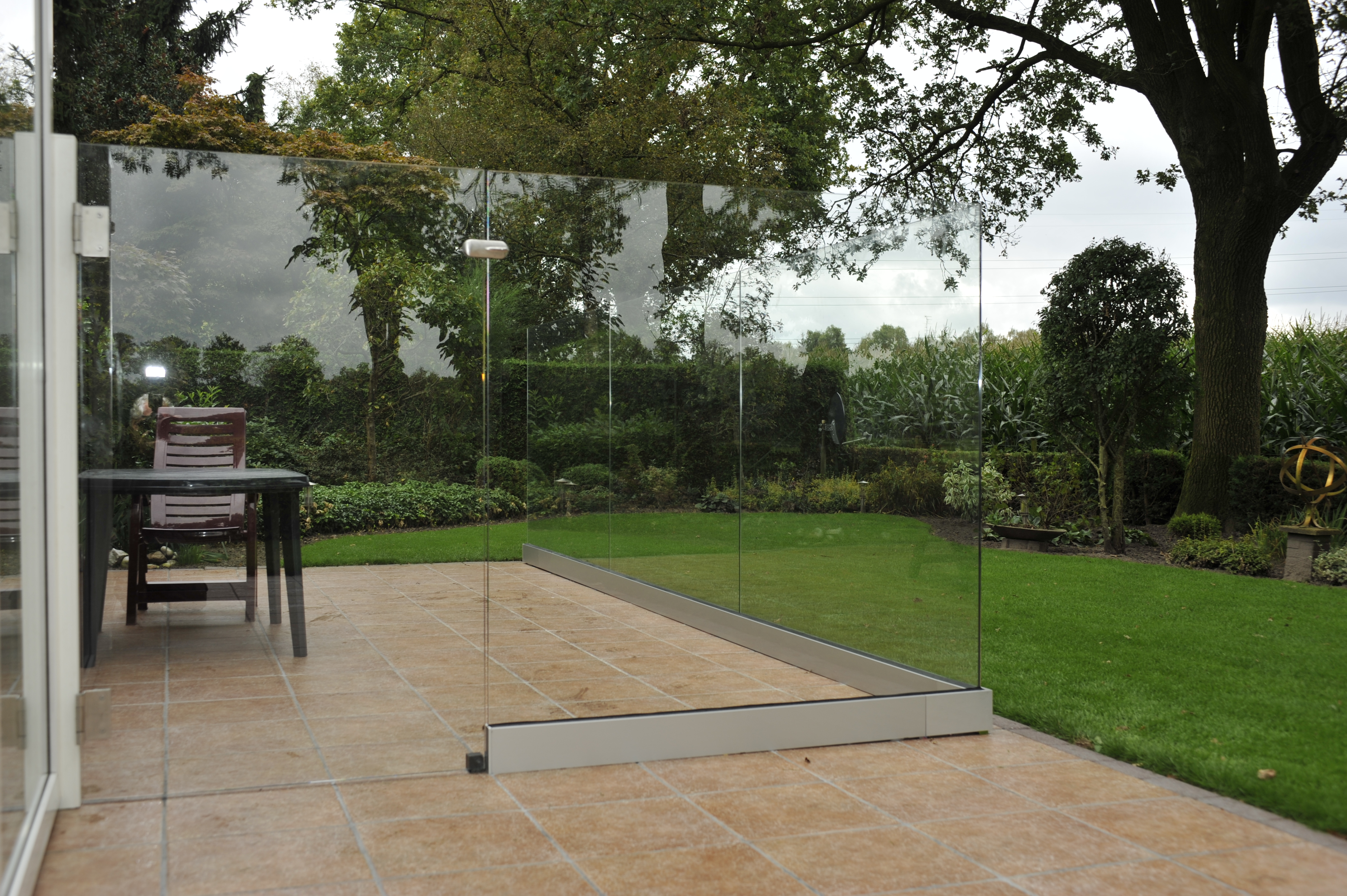 Volglazen windscherm in aluminium onder profiel